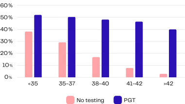 Secondo i dati provenienti dagli Stati Uniti, PGT ha un effetto molto positivo sul tasso di successo di attecchimento embrionale nell’utero. Una differenza molto significativa riguarda principalmente le clienti di età superiore ai 40 anni.