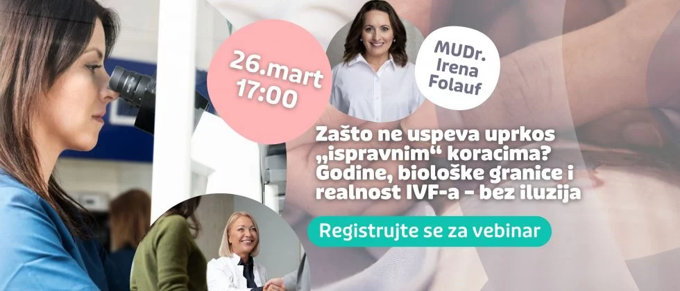 Na našem predstojećem vebinaru MUDr. Irena Folauf i IVF koordinatorke Dina Jenčíková i Slađana Vojinović otvoreno govore o činjenicama, mogućnostima i realnosti lečenja neplodnosti – bez mitova i bez iluzija. Naravno, uživo ćemo odgovarati i na vaša pitanja.